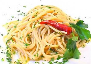Preparación: Suponiendo que todo el mundo sabe cómo cocinar la pasta, a continuación se explicará la preparación del condimento de ajo-aceite-chile que debe ser completado antes de que los términos cocción de la pasta.